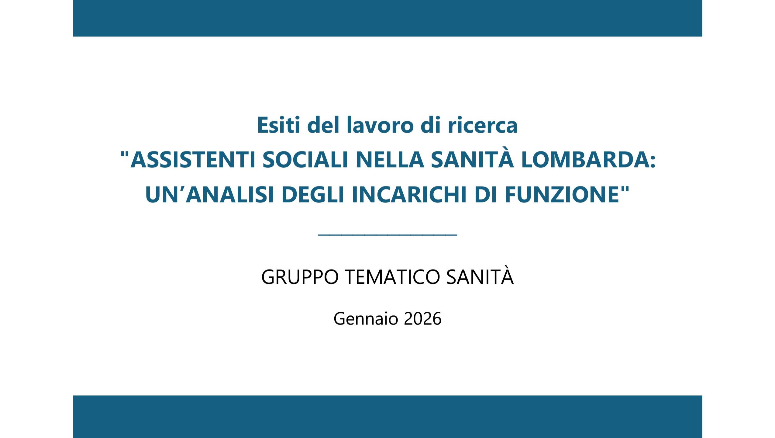 Il documento “ASSISTENTI SOCIALI NELLA SANITÀ LOMBARDA: UN’ANALISI DEGLI INCARICHI DI FUNZIONE” è frutto del lavoro di studio e rielaborazione messo in campo da colleghi che partecipano al gruppo tematico, con l’intento di offrire alla comunità professionale un quadro conoscitivo della situazione, sia sotto il profilo quantitativo sia dal punto di vista delle caratteristiche dei ruoli, delle attività prevalenti e dei modelli organizzativi emergenti, nonché del grado di soddisfazione espresso dai colleghi che hanno partecipato all’indagine.